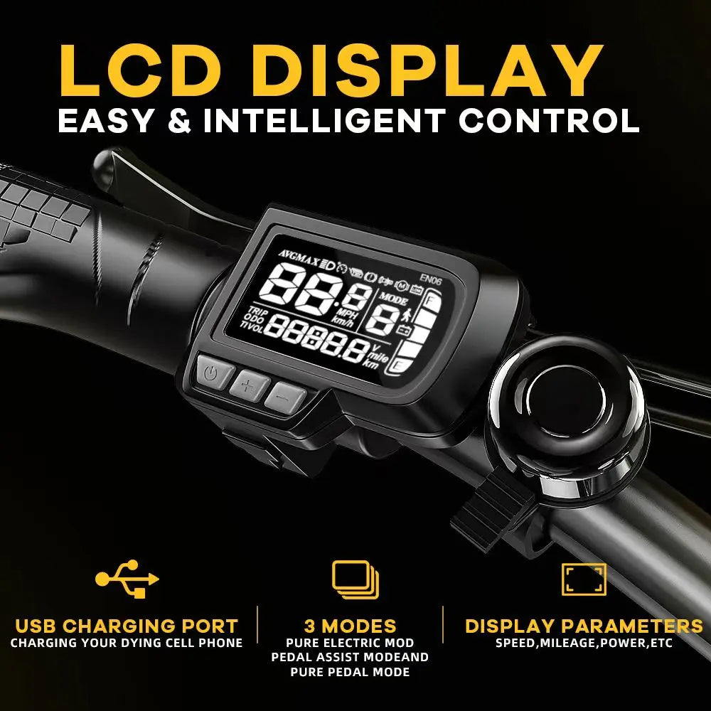 - Foldable and portable step through e-bike: The foldable design of the Cybervelo e-bike ensures that you can take it anywhere. There are 3 class modes, five available levels of pedal assist and a professional 7-speed transmission system. The advanced LCD display with charging port continuously shows real-time speed, mileage, and battery power, ensuring you to control your e-bike riding status.
